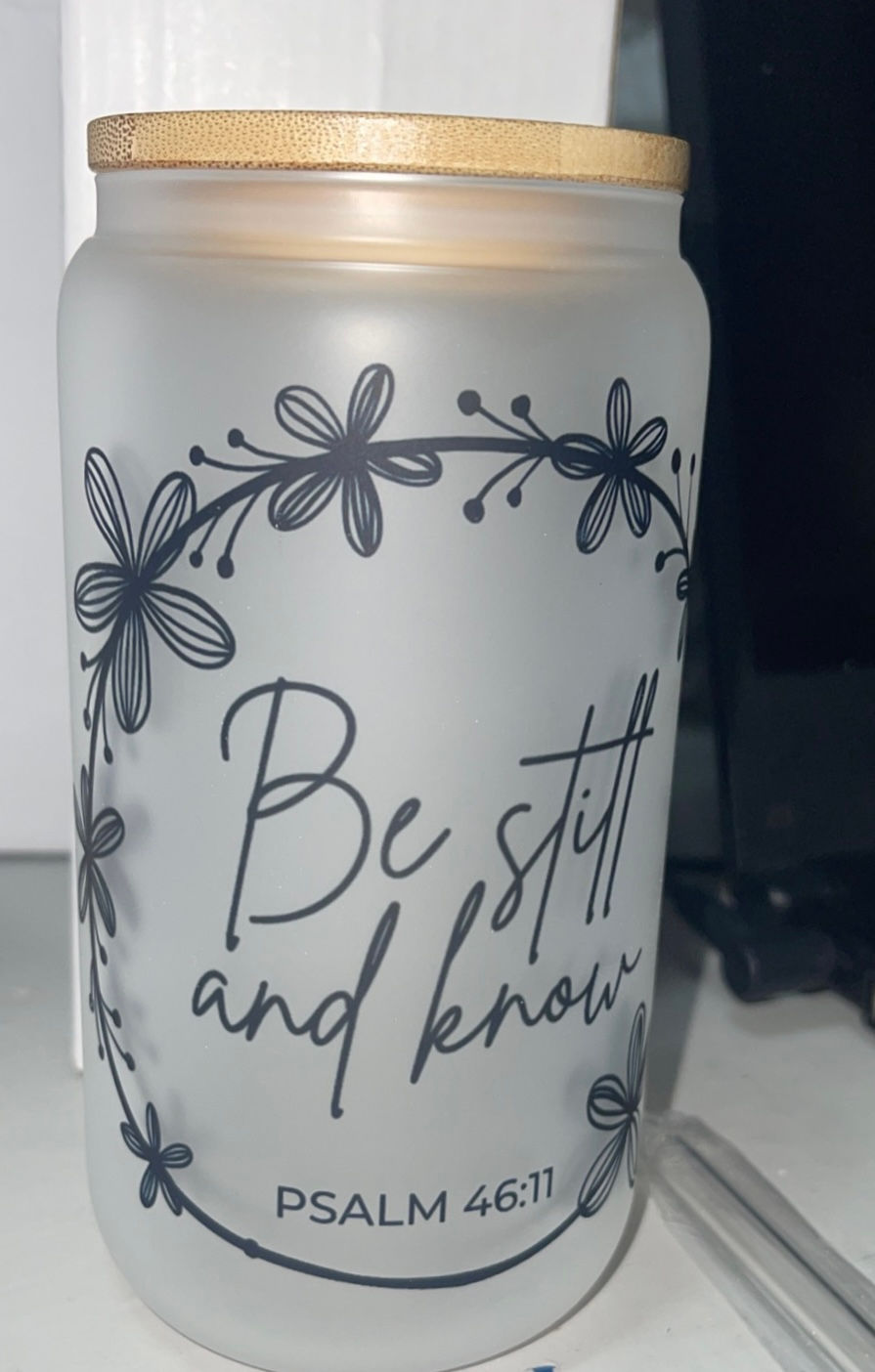 Be Still and Know frosted glass